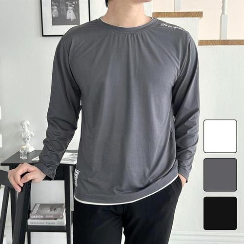레이어드 면티 긴팔 라운드 넥 티셔츠 포인트 레이어 WFLQCP6