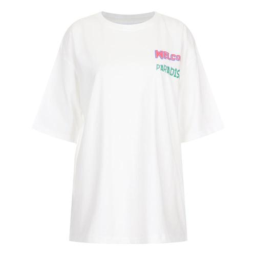 국산 여성 라운드넥 파라다이스 나염 반팔 면티셔츠 MER-WSH-20715-아이보리