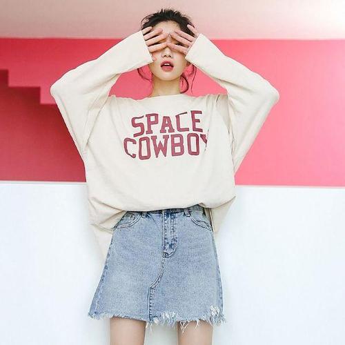 TKX 1+1 여성 순면 긴팔 티셔츠 봄 가을 캐주얼 만화 프린트 포켓 디테일 K37