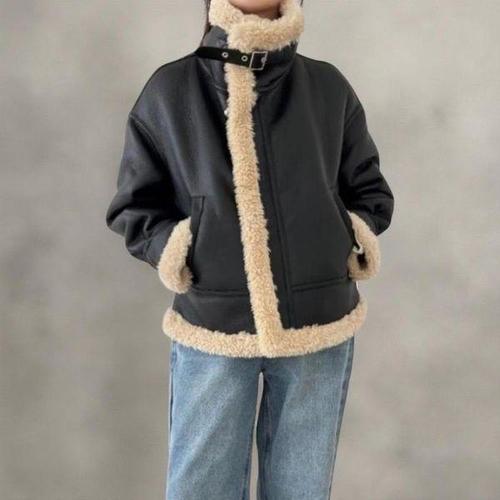 [신상오픈런]여성 두꺼운 페이크 퍼 안감 무스탕 하이넥 재킷