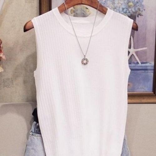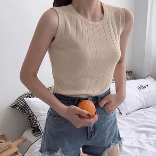 민소매티 여성 골지 나시 라운드 티 끈 WFLQA2W