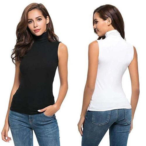 여름오피스룩 폴라티 세미캐 이너 티셔츠 민소매 여성 WFJHPT6