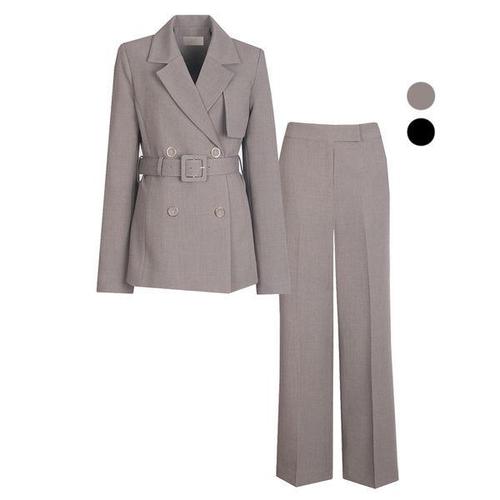 [비비드시크릿가너]SET 여성 가든 벨티드 봄가을 더블 정장 자켓+팬츠 세트