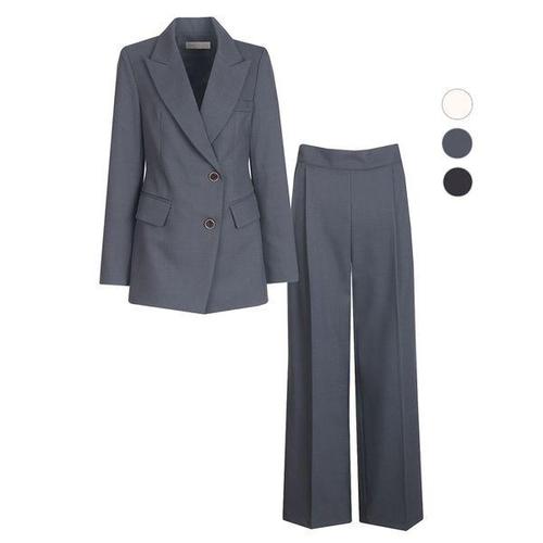 [비비드시크릿가너]SET 여성 예스 더블 버튼 봄가을 정장 자켓+팬츠 세트