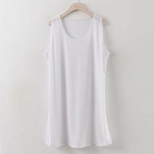 빅사이즈 여성의류 레이어드 20수 이너 롱 나시 민소매 옆트임 티셔츠 오버핏 루즈 봄 여름 사계절 66-110 size