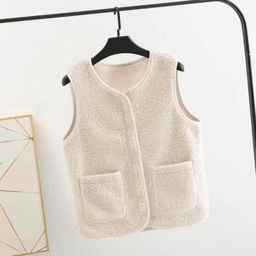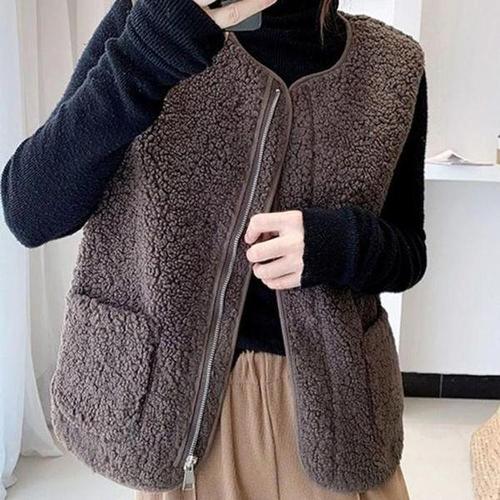 POMTOR 겨울 여성 가을 겨울 후리스 조끼 뽀글이 양털 포켓 코트 여성 조끼