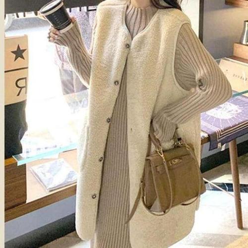 [셀러허브_여성트랜드패션]ONM 여자 겨울 뽀글이 긴 조끼 롱 롱 여자 니트 긴