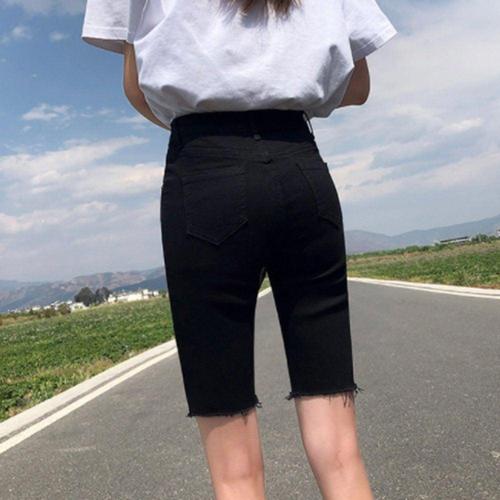 여성 스판 5부 청반바지 딥블루 블랙 반바지 기본 아이템 5521