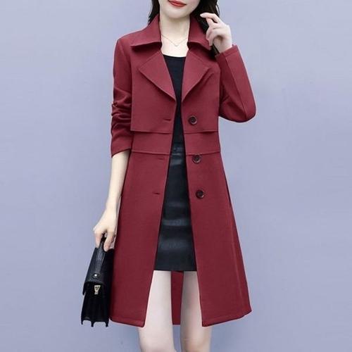 TEMU 패셔너블 활용도 높은 캐주얼 슬림핏 미디 출퇴근용 자켓 여성용 봄 가을 트렌치 코트 50005