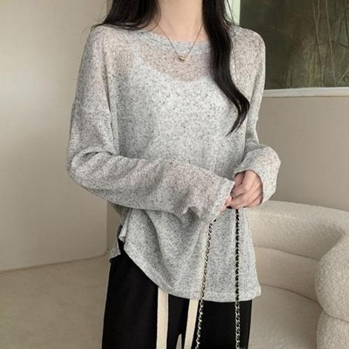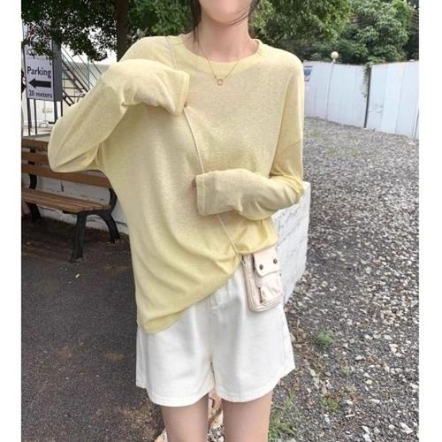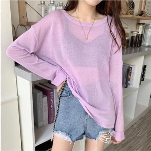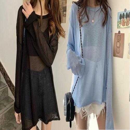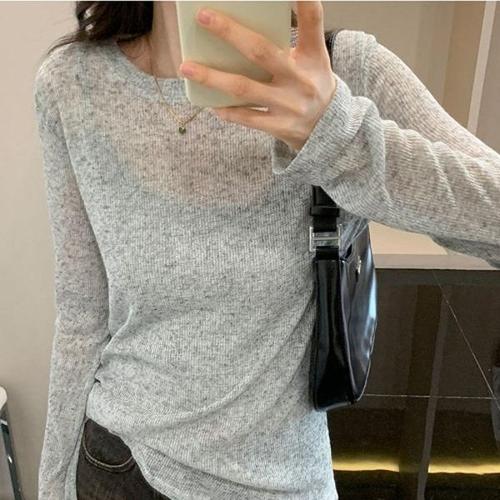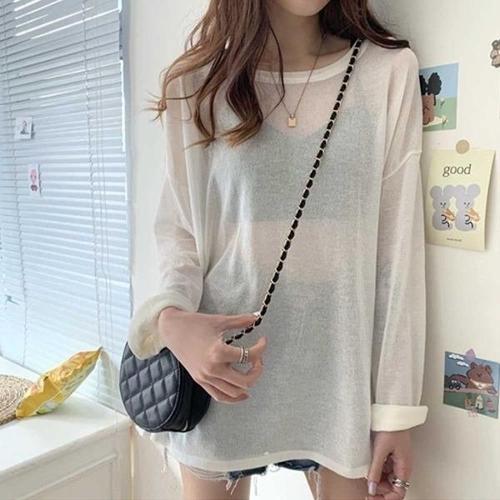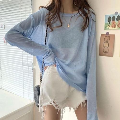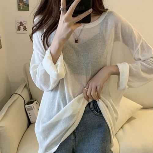 [엄지척]여성 시스루 여름 얇은 라운드넥 긴팔 티셔츠_19610541_667501