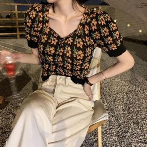 [엄지척]꽃무늬 긴팔크롭티 크롭티셔츠 크롭티 여름 면 시원한_19594422_667501