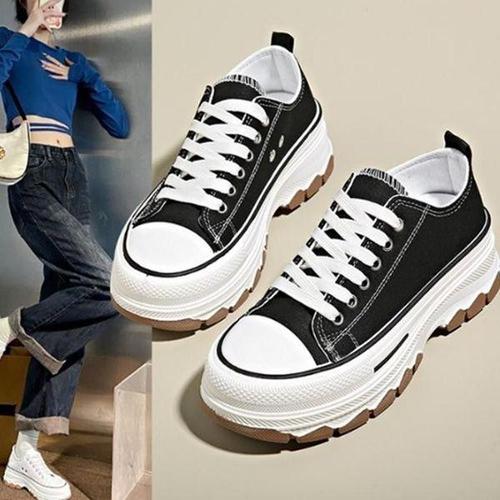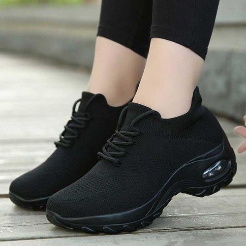 [에이치플러스몰]여성 예쁜 에어 굽 발 편한 슬립온 스니커즈 블랙