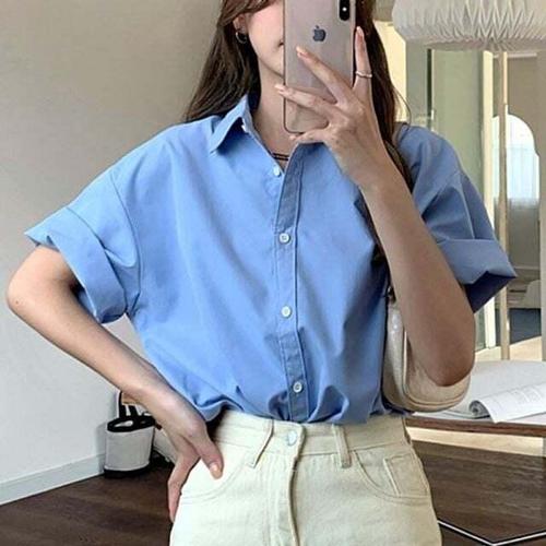[셀럽하우스]여성 PYBX5988 베이직 디자인 루즈핏 반팔 와이셔츠 데일리