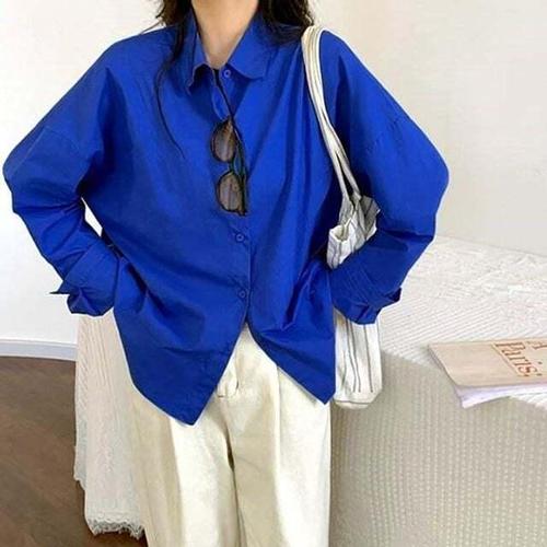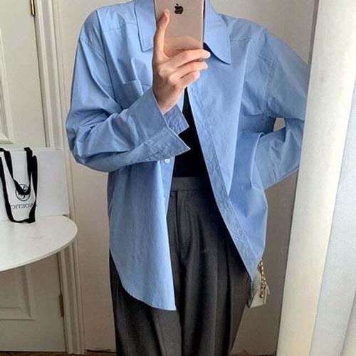[셀럽하우스]블루 NRVD5173 남방 루스핏 셔츠 와이셔츠 시원 블라우스 여성
