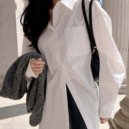 [셀럽하우스]무지 JRIC4417 패션 여성 롱 루즈핏 데일리 A라인 와이셔츠