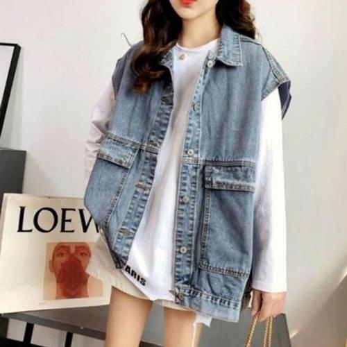[콩심팥심]여자 간절기 캐주얼 루즈핏 브랙진 데님조끼 청조끼