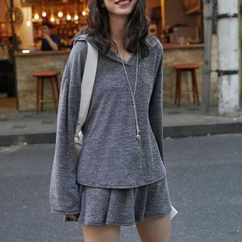 [엄지척]여자 후드 긴팔 트렌드 치마반바지 세트 데일리 홈웨_20433680_667501