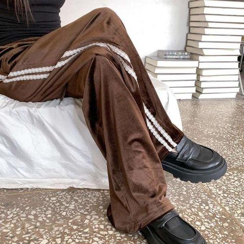 [옷자락]여성용 레이스 벨벳 밴딩 트랙팬츠