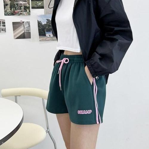 [옷자락]여자 캐주얼 배색 스트링 트랙 트레이닝 밴딩 반바지