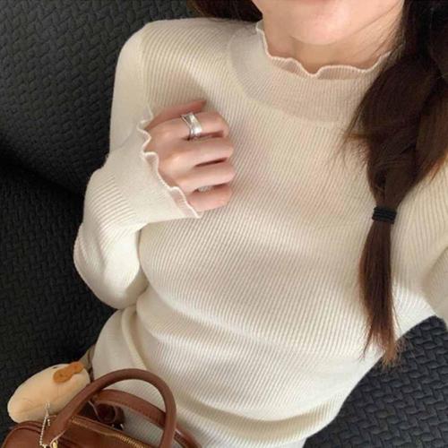 [옷자락]여자 프릴 하이넥 소매 골지 기본핏 니트탑 티셔츠