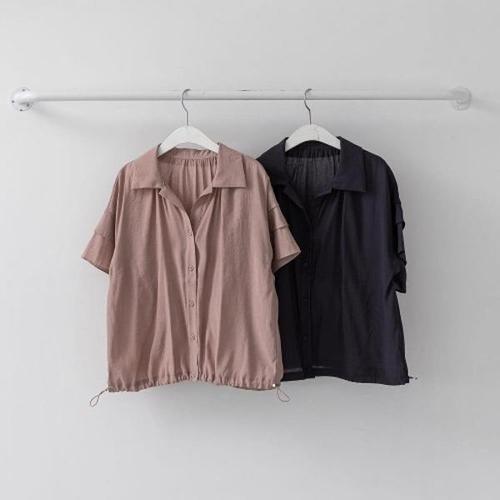 [다잇템][다잇템] 여성 잔주름 프릴 티어드 반소매 카라 남방 여름용_22002057_588872