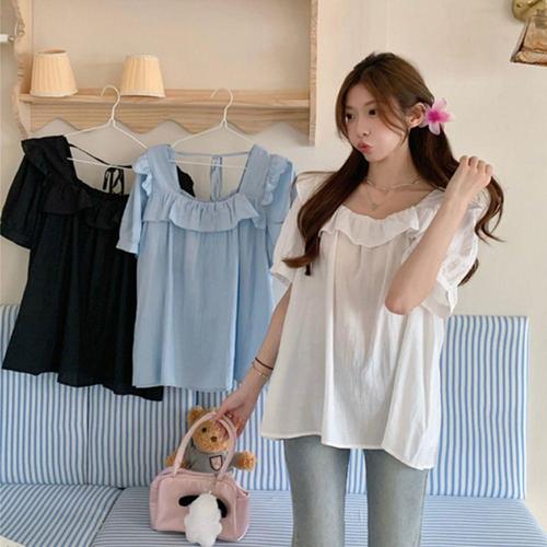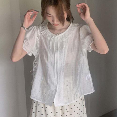 [셀러허브_여성트랜드패션]여름 반팔 프릴 소매 셔츠 카라 데일리 GWM