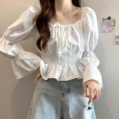 [셀럽하우스]여름 BGIP8672 여성 데일리 셔츠 얇은 긴팔 허리 매듭 블라우스