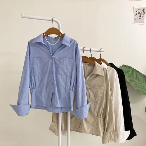 프에브 허리 셔링 포켓 셔츠 블라우스(4color)