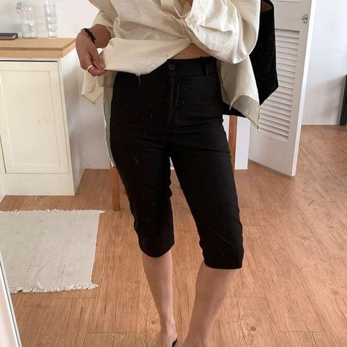 [옷자락] 여자 카프리팬츠 5부 슬림핏 블랙 바이커 가을 반바지