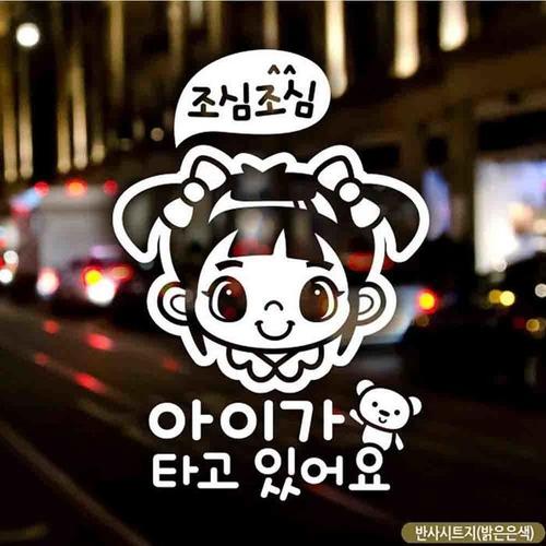 [BZJKM6WO_4A]국문 타고있어요 조심여아 반사 자동차스티커