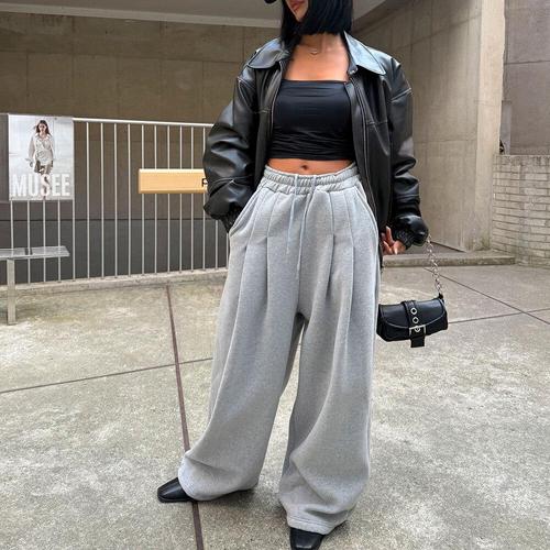 [다잇템][다잇템] 여성 넓은 보온 하트포켓 고무줄 무채색 트랙수트 바지 바지_23915427_588872