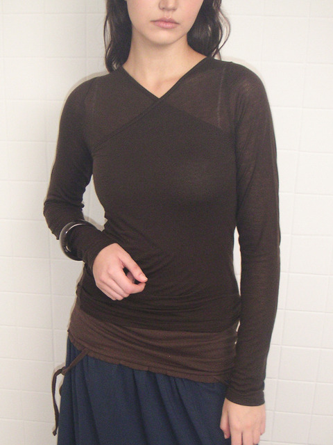 [포에브] 원 숄더 레이어드 탑 세트 - 브라운