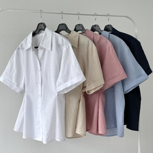 [옷자락] 여성 클래식톤 린넨 반팔 셔츠 면반소매 남방