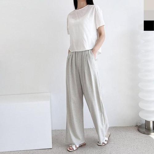 티류으스 슬랙스 치마바지 면 여성 밴딩 세트구성 린넨와이드팬츠 상의 배기 통바지