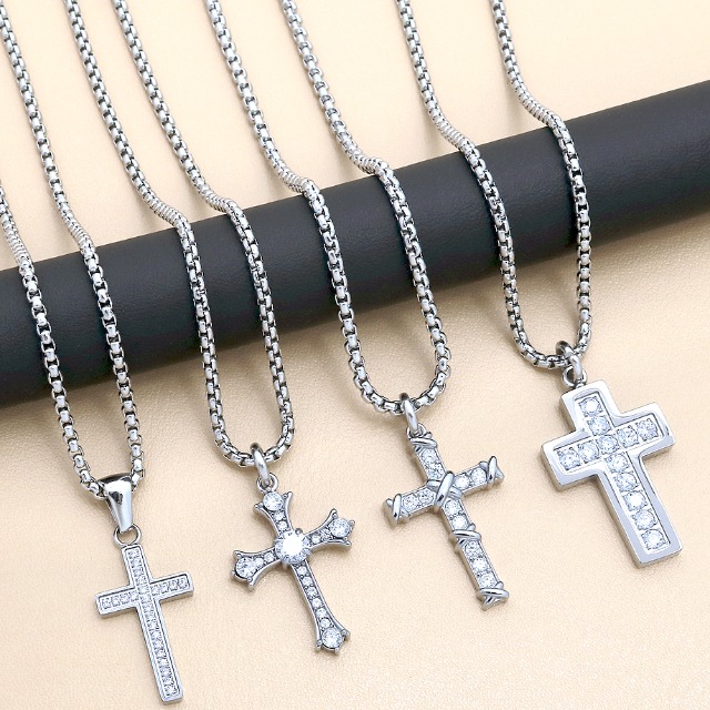 변색/알러지 없는 소재 써지컬스틸 큐빅십자가 여자 남자 공용패션 체인길이 주문제작
