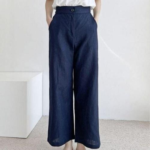 여성 시원 편안 면 마 소재 오버핏 바지 프리미엄 소프트 캐주얼 린넨 와이드 팬츠