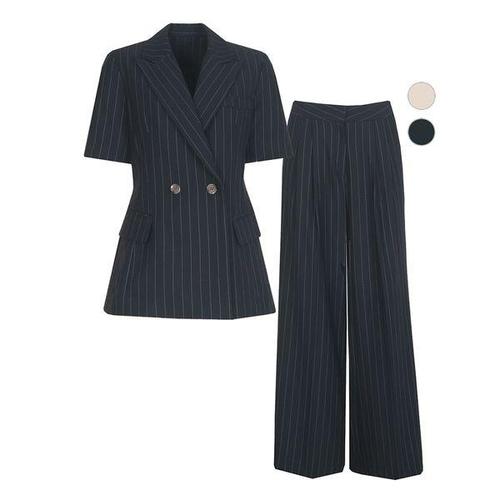 [비비드시크릿가너]SET 여성 스트라이프 라인 여름 정장 자켓_팬츠 세트