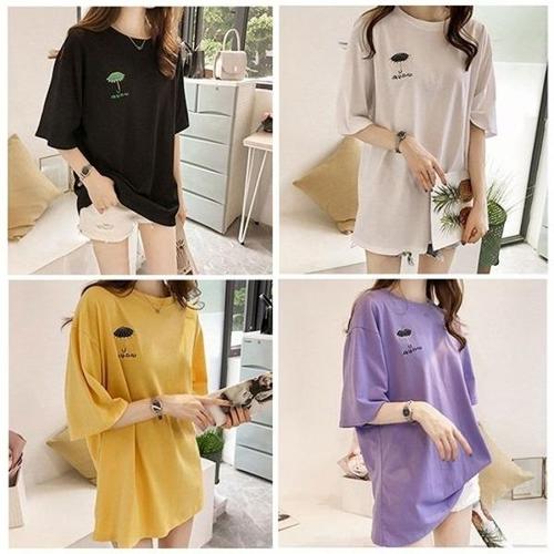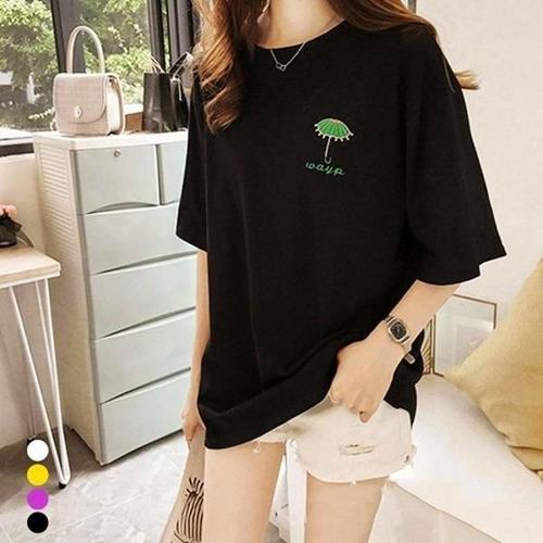 [엄지척]여성 우산 자수 루즈핏 롱 반팔 티셔츠_19615242_667501
