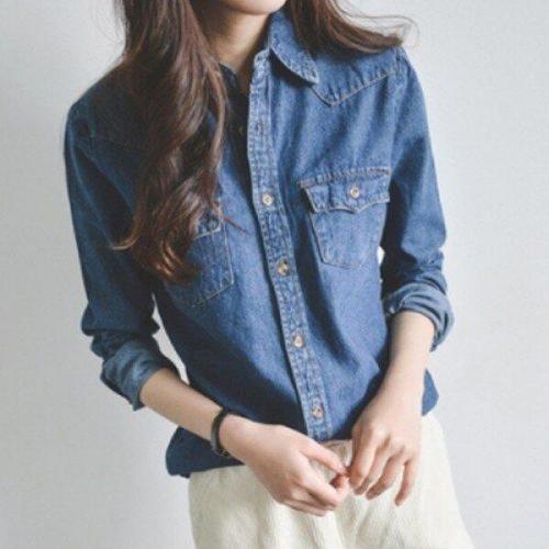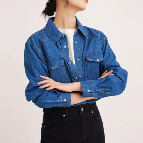 여성 긴팔 데님 셔츠 청셔츠 청남방 블라우스 티셔츠 자켓 편안한 예쁜 글로벌와이