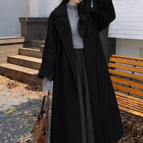 [기타브랜드]페미닌 무드 스트링 블랙 롱코트