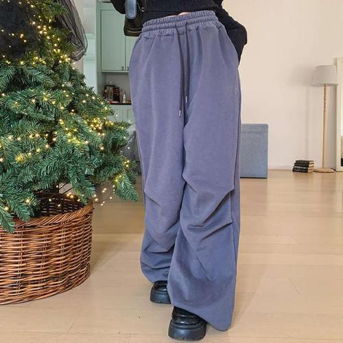 H스타일(BM)양기모와이드스트링팬츠 겨울 여성 양기모 밴딩팬츠 와이드팬츠 통바지 슬랙스