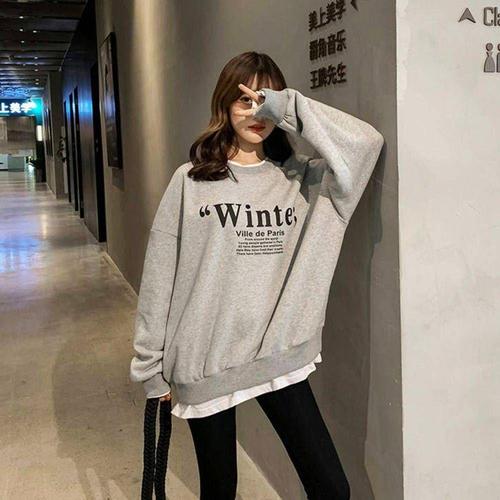 (색상 그레이)레이어드 Winte 그레이 맨투맨 루즈핏 기모 여자 여성 겨울패션
