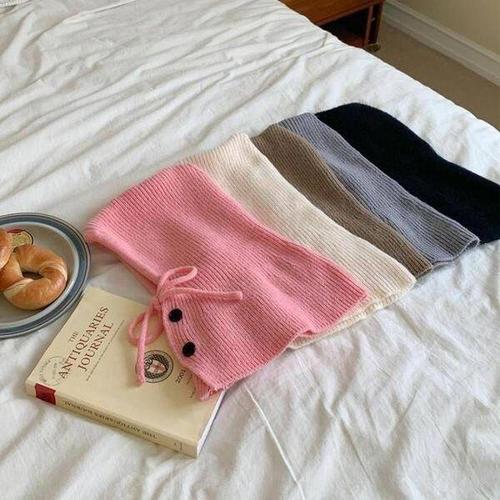 여성 후드끈 단추 오버핏 니트 바라클라바 겨울모자 패션 코디
