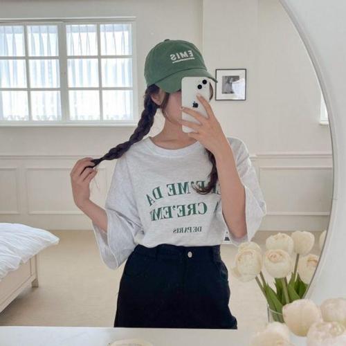 [셀럽하우스]반팔티 FPOY6046 오버핏 텍스트 데이트룩 캠퍼스 박스티