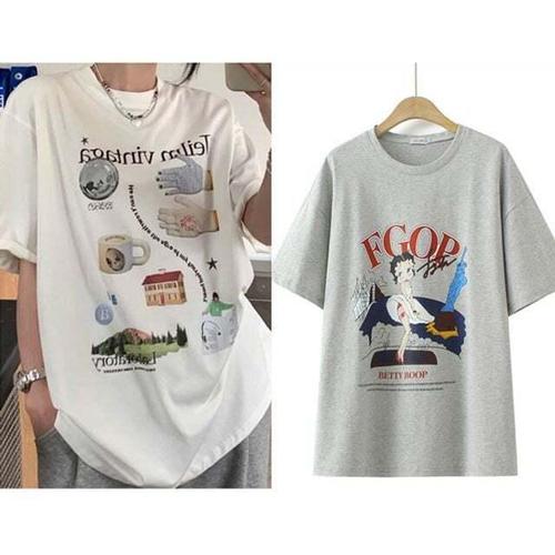 [셀럽하우스]여성 DNHT6130 오버핏 프린팅 캐주얼 박스티