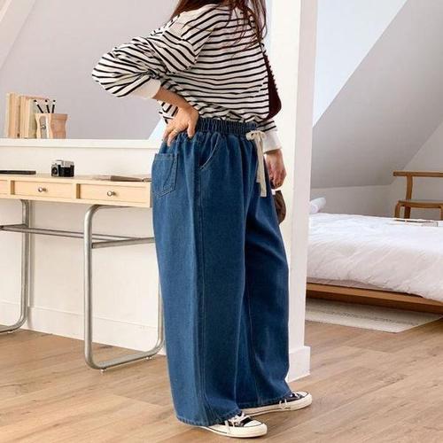 여성 가을 청 워싱 배기팬츠 밴딩 데님 캐주얼 바지