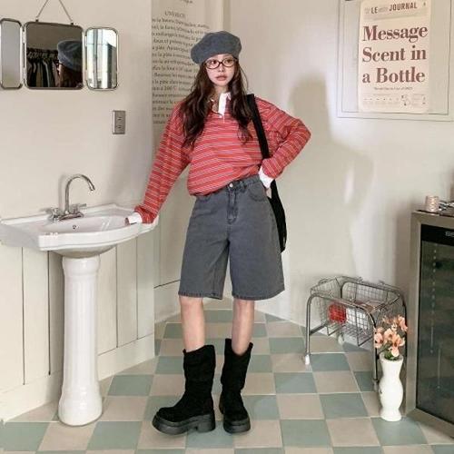 [다잇템][다잇템] 여자 키치무드 그런지 진 버뮤다핏 워싱 반바지_22843092_588872