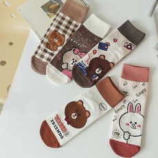 [하이언더바]국산 여성 고급 면 5켤레 애니팜 동물 캐릭터 중목 패션 골지 양말