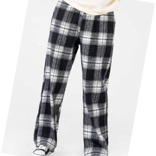 [셀러허브_여성트랜드패션]ONM 여자 울 체크 와이드팬츠 바캉스룩 대학생 쿨바지