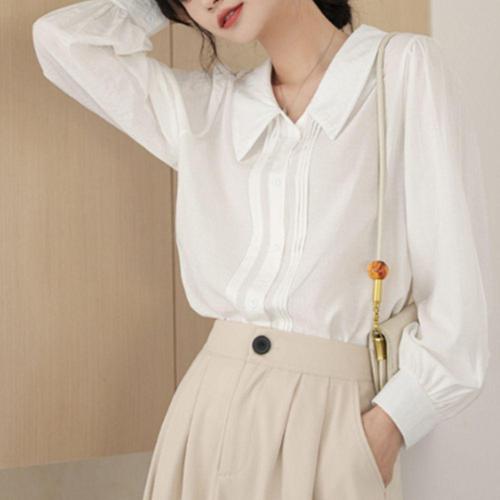 [셀럽하우스]화이트 SWQY6510 셔링블라우스 여름 세미정장 직장인 셔츠